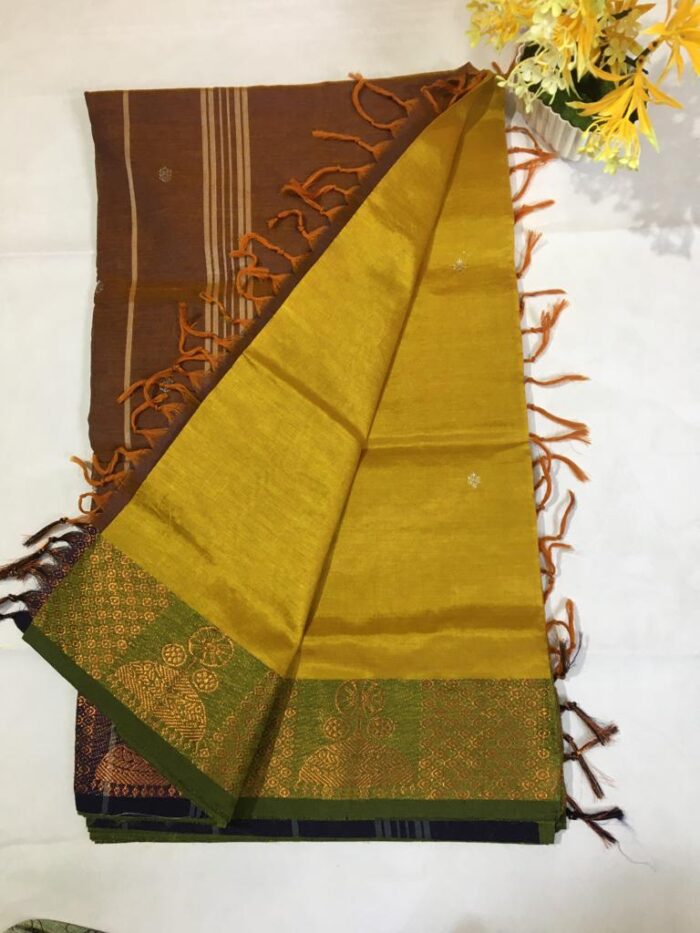 Drape in these Handloom Silk Cotton sarees that are beautifully and elegantly crafted by the weavers of South India. This collection is the most sought-after for its aesthetic look and stunning colour combinations. They are lightweight and soft and suitable for all occasions.