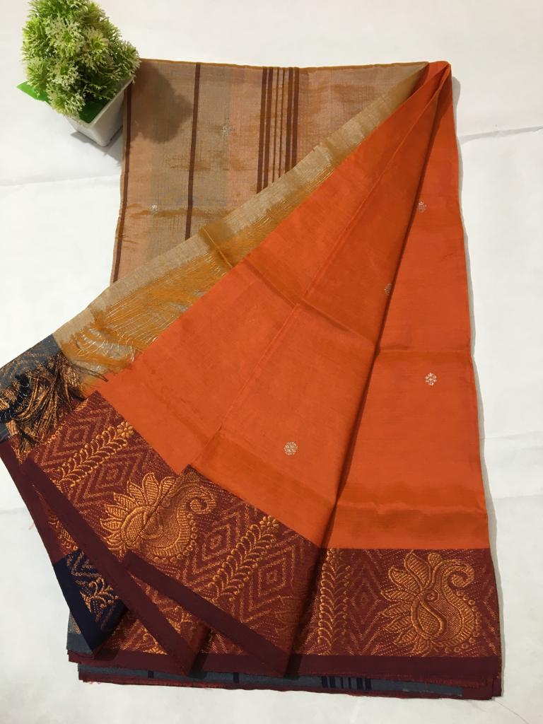 Silk Cotton Copper Jari Sarees
